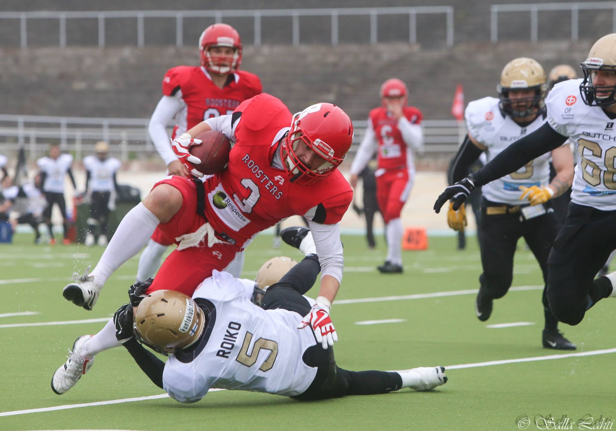 – Tämä sujui kaiken kaikkiaan aika hyvin – vaikea erotella yksittäisiä tekijöitä, Roostersin päävalmentaja Juha Hakala mietti ottelun jälkeen. – Hyökkäys pelasi vahvasti pelisuunnitelman mukaisesti ja sai onnistumisia. Puolustuksessa meiltä jäi oikeastaan puuttumaan vain säkitykset. Curtis (Slater) pelasi erinomaisen ottelun ja aiheutti kolme pallonmenetystä vastustajalle.