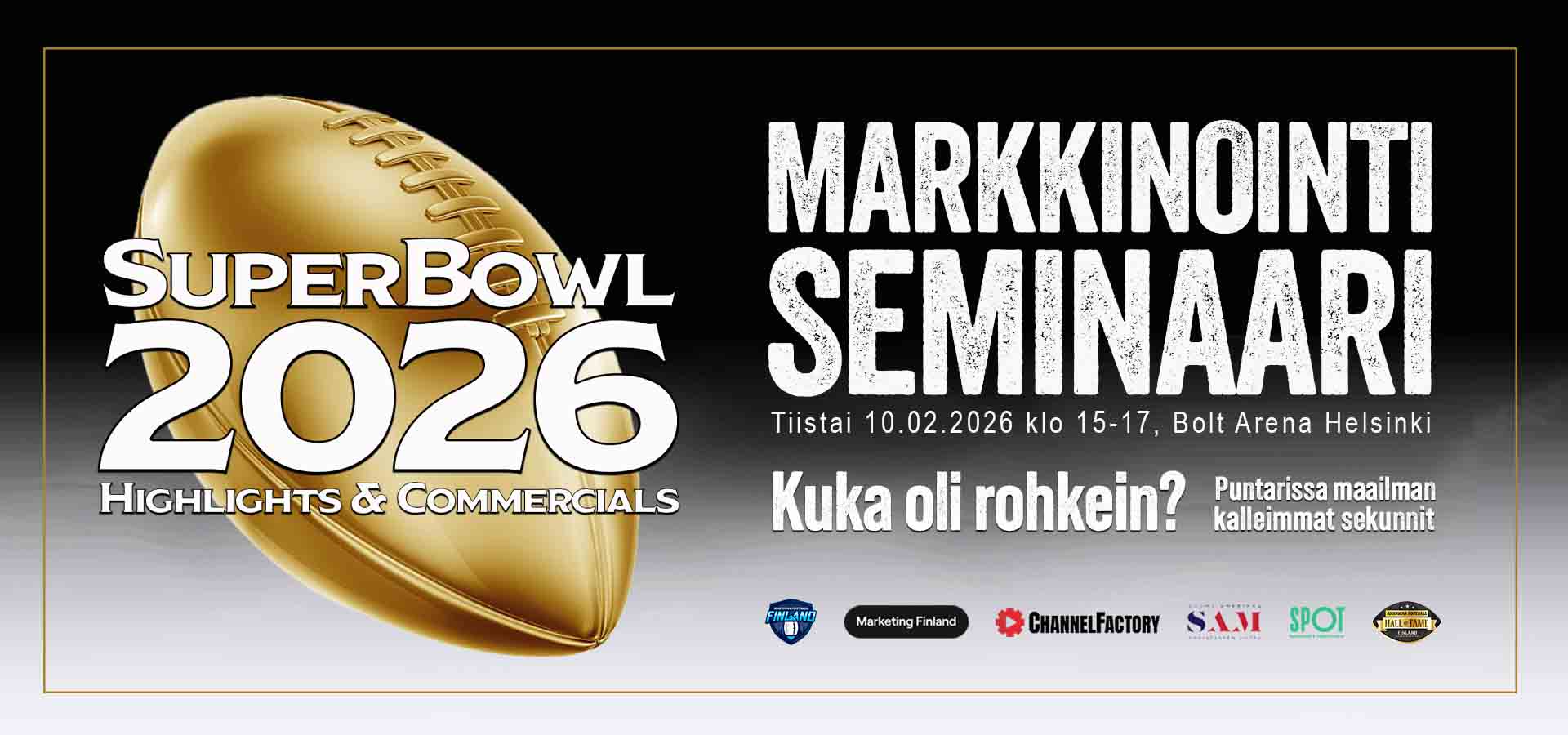 Vaahteramalja pelataan tulevana syksynä nyt kolmatta perättäistä kertaa Töölön Bolt Arenalla. SAJL:n yhteistyö Arenan kanssa laajenee tällä kaudella myös muihin tapahtumiin. Bolt Area ja SAJL järjestävät yhteistyössä sunnuntaina 8.2. kaupungin viallisen Super Bowl Yö -tapahtuman ja heti seuraavana tiistaina Bolt Arenan ravintolatiloihin kokoontuu laaja joukko suomalaisia markkinoinnin ammattilaisia Super Bowl-mainosten pariin perinteiseen Buper Bowl High Lights & Commercials markkinointiseminaariin.