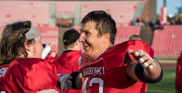 Porvoo Butchersissa jenkkifutisuransa aloittanut Santtu Äyräväinen kertoi eilen laittavansa hartiasuojat naulaan peliuran päättymisen merkiksi. Tynkäkausi 2020 jää hänen viimeisekseen pelaajana. Uransa aikana 11 kertaa Vaahteramaljaa mestarina nostanut Äyräväinen aloitti lajin pelaamisen jo vuonna 2000 ja uralle mahtuu kotimaan mestaruuksien ja maajoukkueuran ohella IFAF Champions Leaguen voitto vuodelta 2014 Roostersin paidassa. Kaudesta 2014 lähtien Äyräväinen on pelannut punakoneen puolustuksessa. Uralle mahtuu myös kaksi kautta Saksan GFL:ssä (Essen Assindia Cardinals 2009, New Yorker Lions 2011) ja yksi Norjassa (Oslo Vikings 2007).