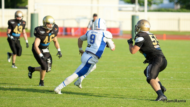 Porvoolaiset juoksivat Kemani Jonesin johdolla 294 jaardia Lauantaina Pyynikillä Tampereella pelattu Vaahteraliiga-ottelu Saintsin ja Porvoo Butchersin välillä päättyi tiukkojen vaiheiden jälkeen porvoolaisten voittoon lukemin 28–38. Joukkueiden lauantai-iltapäivän hyökkäystaktiikat kävivät selviksi …