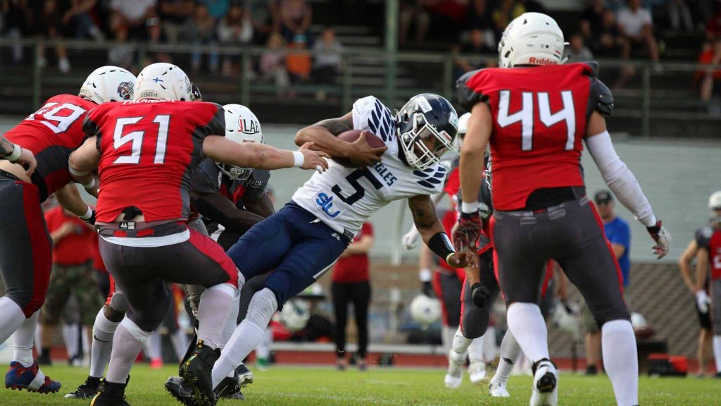 Kotijoukkue Eagles oli onnistunut kuljettamaan palloa juosten kauden yhdeksässä ensimmäisessä pelissä yhteensä 198 jaardia. Perjantaina jaardeja kertyi 217. Kotkalaisten etenejistä tuloksekkain oli elämänsä pelin pelannut Marnol Raudver joka kantoi palloa 125 jaardin matkan. Crusaders-puolustus onnistui pitämään aiemmissa peleissä hienosti toimineen Eaglesin heittopelin kurissa eikä pelinrakentaja Darrien Boonelle annettu aikaa suuriin peleihin. Heittojaardeja Eaglesille vaatimattomat 59.