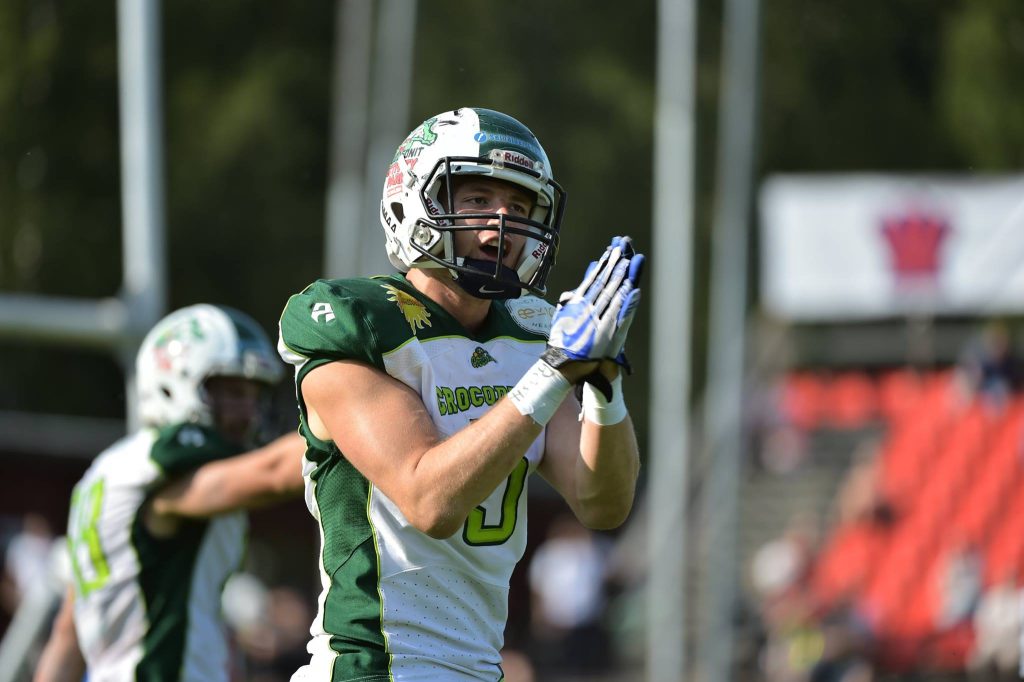 Crocodiles-potkaisija Spencer Cutlan (88) oli jälleen varmassa kunnossa niin potkuissa kuin laitahyökkääjänäkin. Yhteensä Walesilainen teki 18 pistettä ja vankisti paikkaansa Vaahteraliigan pistetilaston kärjessä. Kuva: Samppa Toivonen