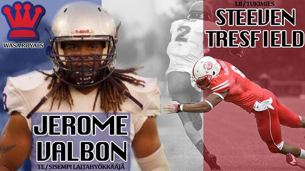 Tammikuun lopulla siirtomarkkinoiden satoa korjaamaan alkanut Wasa Royals uutisoi viikonloppuna tehneensä kautta 2018 koskevat sopimukset ranskalaisten Steeven Tresfiedin ja Jerome Valbonin kanssa. Tukimies Tresfield (186 cm / 100 kg) paikkaa osaltaan Chris Youngin poistumisen jättämää valtavaa tyhjiötä puolustuksessa, ja Valbon (190 kg / 111 kg) puolestaan on sisempi laitahyökkääjä, jonka läsnäolo alleviivaa entisestään tulevan kauden suoraviivaista ja aggressiivista Royals-hyökkäystä.
