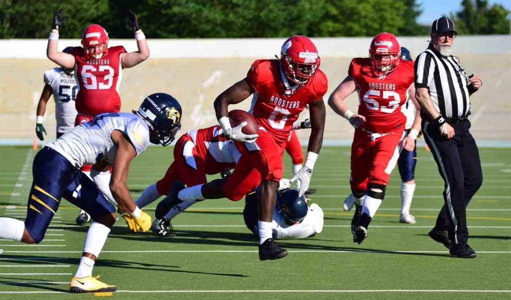 Miro Kadmiryn johtama Roosters-hyökkäys eteni torstai-illassa pääosin heittämällä, mutta ratkaisevilla hetkillä vahvat keskushyökkääjät, Karri Pajarinen ja Andrecus Lindley survoivat pallon väkisin vastustajan maalialueelle. Ottelun ensimmäisen puoliskon hahmo oli Roostersin Lindley kahdella touchdwnillaan. Toisella puoliskolla maalin makuun pääsivät Karri Pajarinen sekä ensimmäistä jenkkifutispeliään koskaan pelannut ex-pikajuoksija Willem Kajander. Katso Kajanderin Ruutu-haastattelu: