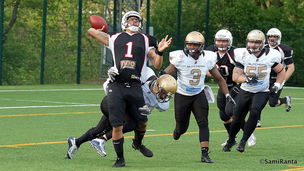 Porvoon Butchersin Ville Kurvinen kuuluu Vaahteraliigan kaikkien aikojen kovimpien laitahyökkääjien joukkoon. Parhaalla kaudella 12 vuotta sitten syntyi peräti 23 kiinniotto-TD:tä. Uran yhteissaldo on huimat 84 touchdownia kiinniotoista.
